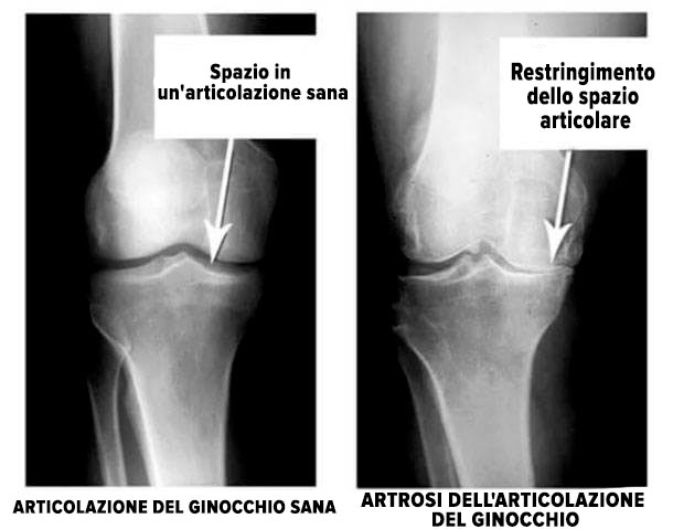 Guarda queste immagini, puoi vedere che nell'immagine a destra manca lo spazio articolare, le ossa si sfregano tra loro e causano un dolore intenso. E questo processo è molto difficile da fermare! Dopo un paio d'anni, una persona sarà disabile e non sarà in grado di prendersi cura di se stessa.